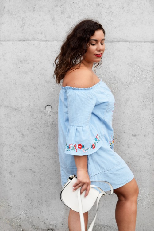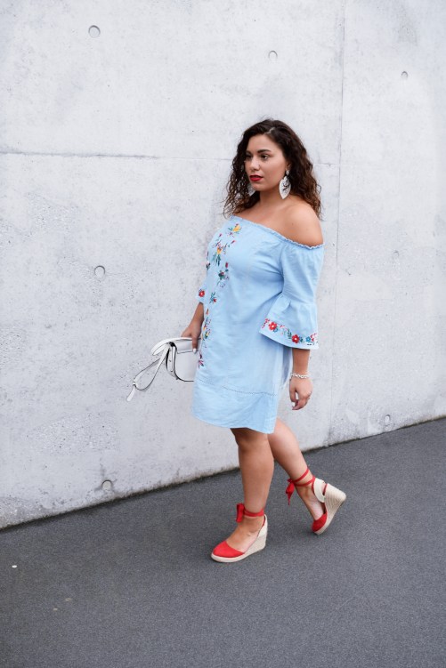eine tolle Wochenmitte, ihr Hübschen! Noch habe ich euch noch gar nichts über unseren Urlaub erzählt! Wir hatten eine wunderschöne aber vor allem relaxte Zeit und haben jede Minute genossen. Hierzu wird es in den kommenden Tagen auch ein kleines Hotelreview geben :-)  In Deutschland angekommen erwartete mich dann auch schon ein tolles Paket von Romwe, worüber ich mich natürlich riesig gefreut habe, denn ich hatte schon vor dem Urlaub ein Auge auf dieses total sommerliche Kleid mit den bestickten Details und der Volantärmel geworfen! Die bestickten Details sind v.a. in diesem Sommer Programm! Es gibt nichts, was nicht bestickt wird. Ob Lederjacken, Schuhe, Shirts oder Kleider! Neben den Stickerein ist auch eine leichte Spitze- bzw. ein Lochmuster kurz vor dem Saum am Kleid zu sehen. Diese ganzen Details machen das Kleid zu etwas Besonderem! Kombiniert habe ich das Kleid zu meinen neuen – und absoluten- Lieblingsohrringen, die ich mir als kleines „Souvenir“ aus Gran Canaria mitgenommen habe ♥ Diesen süßen „Hippe-/Ibiza“- Geschäft gibt es leider nur auf den kanarischen Insel und ein Muss auf eure nächste Kanarenreise! Die Ohrringe und die Espadrillas, die diesen leichten und sommerlichen Look noch etwas verfeinern habe ich in weiß und rot gewählt, passend zu den bunten Stickereien des Kleides!