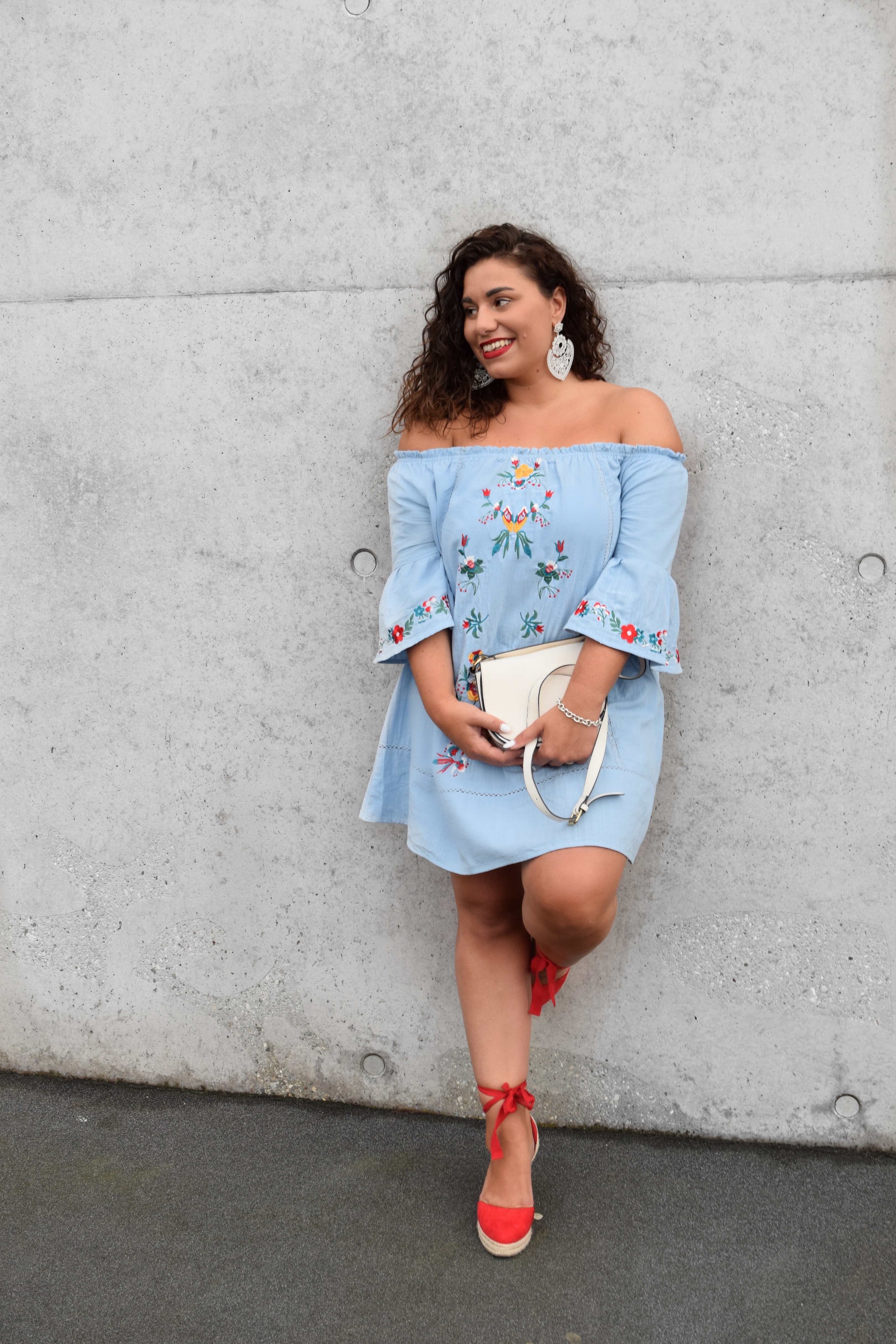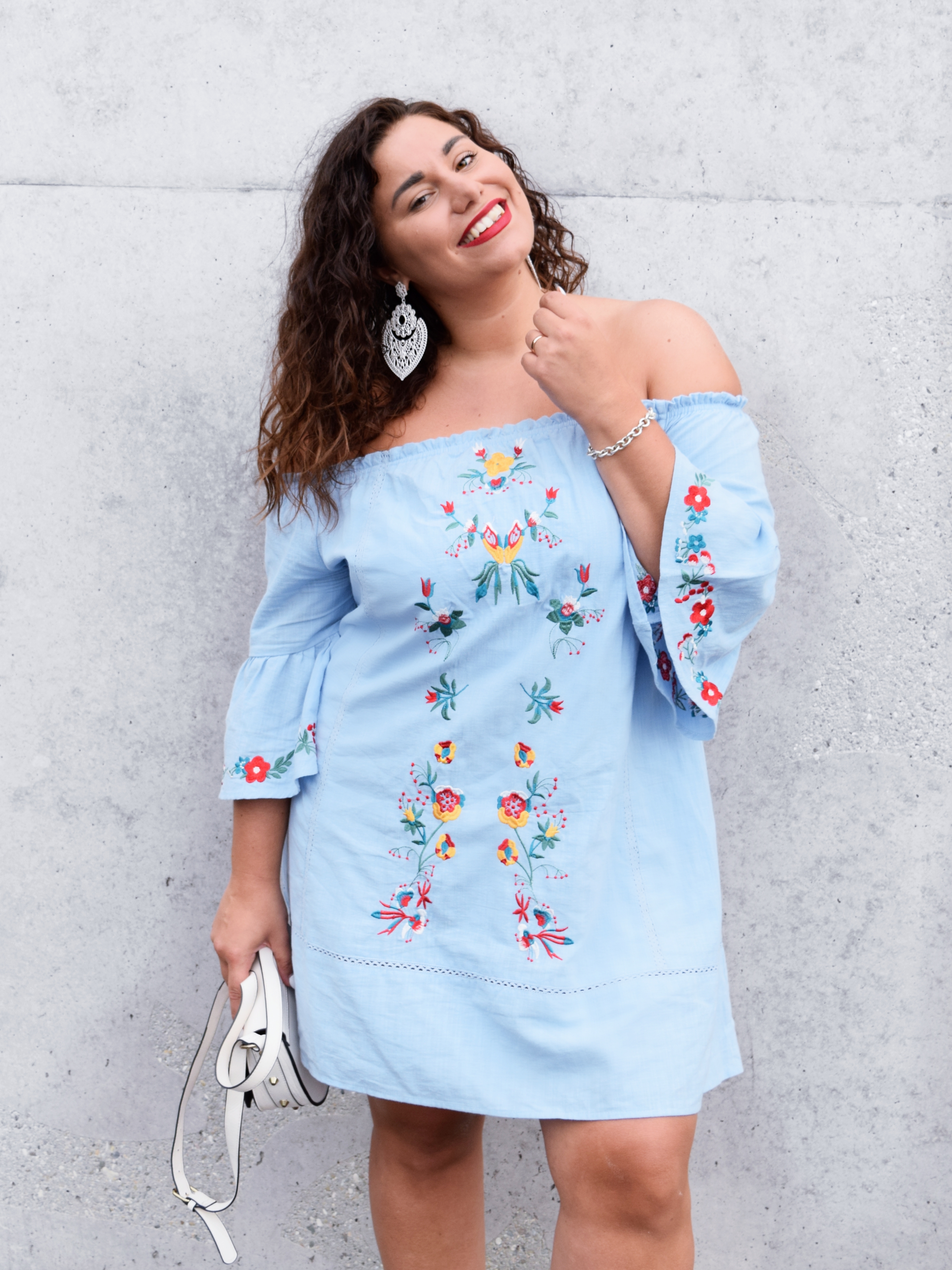 MEXICAN STYLE: EMBROIDED DRESS WITH STATEMENTEARRINGS