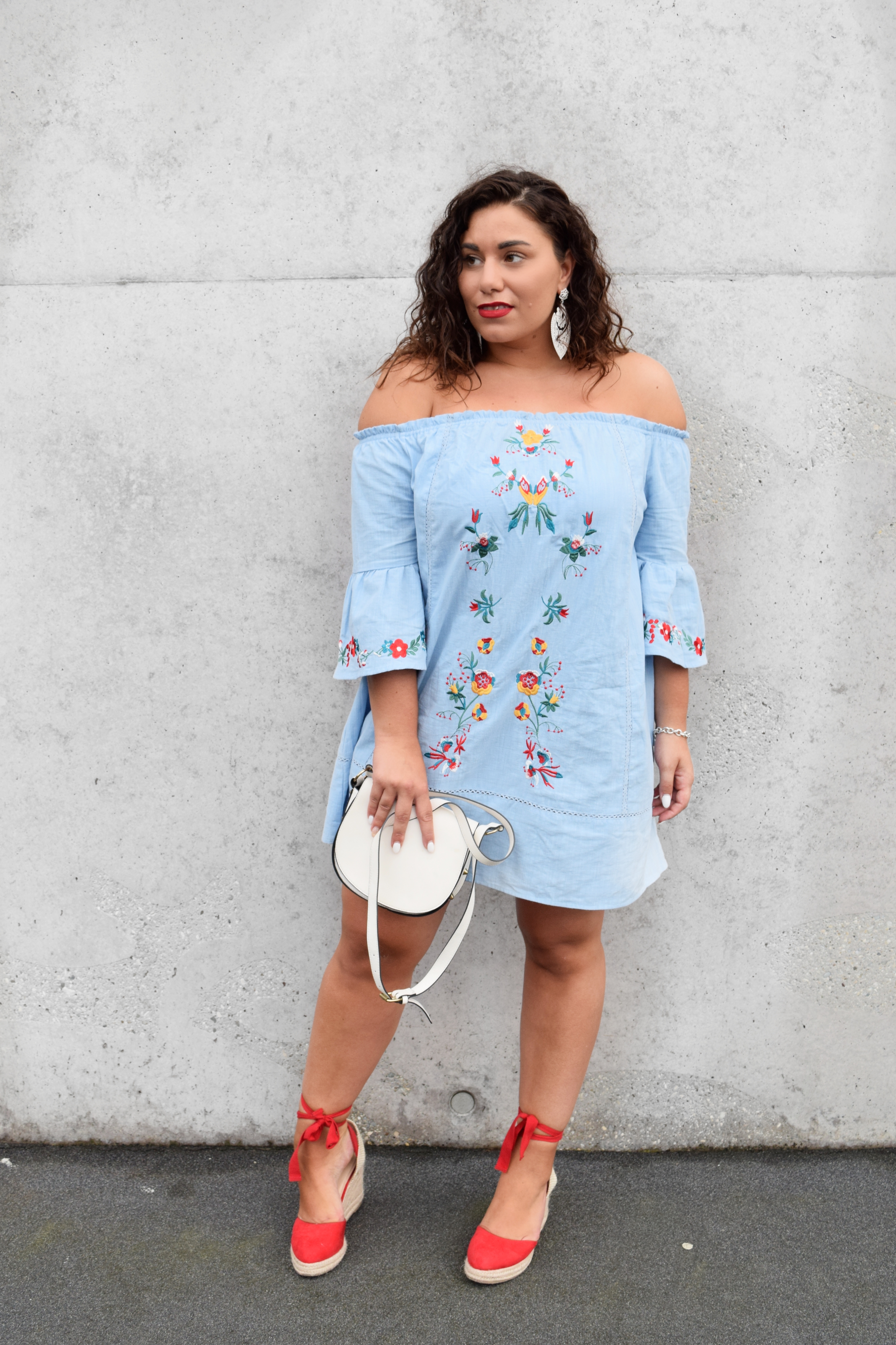 eine tolle Wochenmitte, ihr Hübschen! Noch habe ich euch noch gar nichts über unseren Urlaub erzählt! Wir hatten eine wunderschöne aber vor allem relaxte Zeit und haben jede Minute genossen. Hierzu wird es in den kommenden Tagen auch ein kleines Hotelreview geben :-)  In Deutschland angekommen erwartete mich dann auch schon ein tolles Paket von Romwe, worüber ich mich natürlich riesig gefreut habe, denn ich hatte schon vor dem Urlaub ein Auge auf dieses total sommerliche Kleid mit den bestickten Details und der Volantärmel geworfen! Die bestickten Details sind v.a. in diesem Sommer Programm! Es gibt nichts, was nicht bestickt wird. Ob Lederjacken, Schuhe, Shirts oder Kleider! Neben den Stickerein ist auch eine leichte Spitze- bzw. ein Lochmuster kurz vor dem Saum am Kleid zu sehen. Diese ganzen Details machen das Kleid zu etwas Besonderem! Kombiniert habe ich das Kleid zu meinen neuen – und absoluten- Lieblingsohrringen, die ich mir als kleines „Souvenir“ aus Gran Canaria mitgenommen habe ♥ Diesen süßen „Hippe-/Ibiza“- Geschäft gibt es leider nur auf den kanarischen Insel und ein Muss auf eure nächste Kanarenreise! Die Ohrringe und die Espadrillas, die diesen leichten und sommerlichen Look noch etwas verfeinern habe ich in weiß und rot gewählt, passend zu den bunten Stickereien des Kleides!