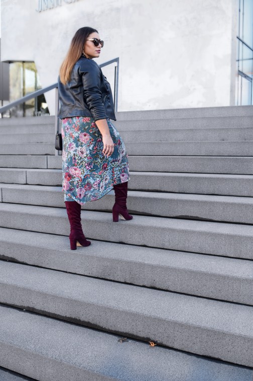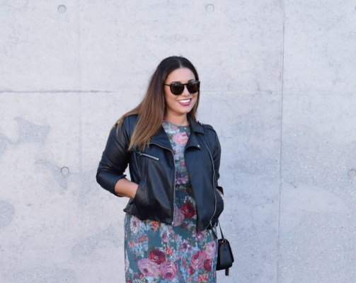 Zu dem Kleid habe ich meine schwarze Lederjacke aus der H&M Plus Size Kollektion kombiniert, ein Stilmix, den ich übrigens liebe! Zartes Blumenkleid zur derben Lederjacke= Perfektes Wohlfühloutfit!